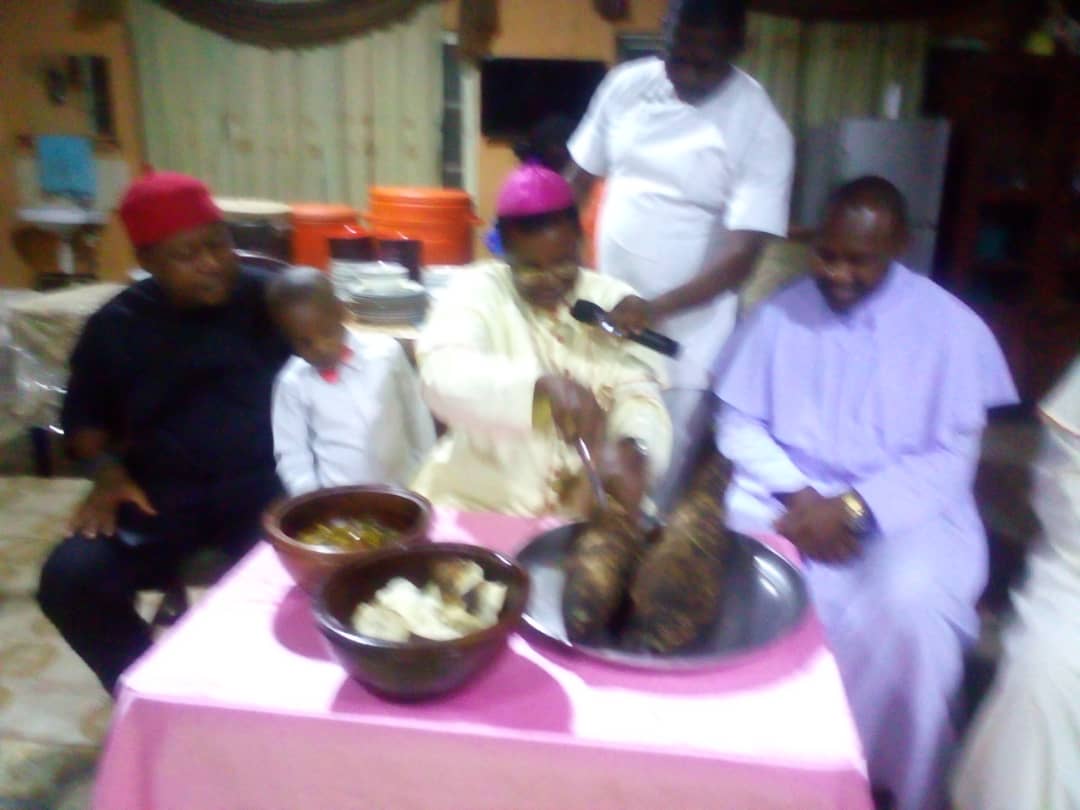 Awka Diocesan Priests, Religious, 2021/2022 out-going and 2022/2023 in-coming Episcopal Household last Tuesday, 6/9/2022 filed out at St. Patrick’s Catholic Cathedral’s refectory to witnessed the celebration of Bishop Paulinus Ezeokafor’s annual iwaji festival.