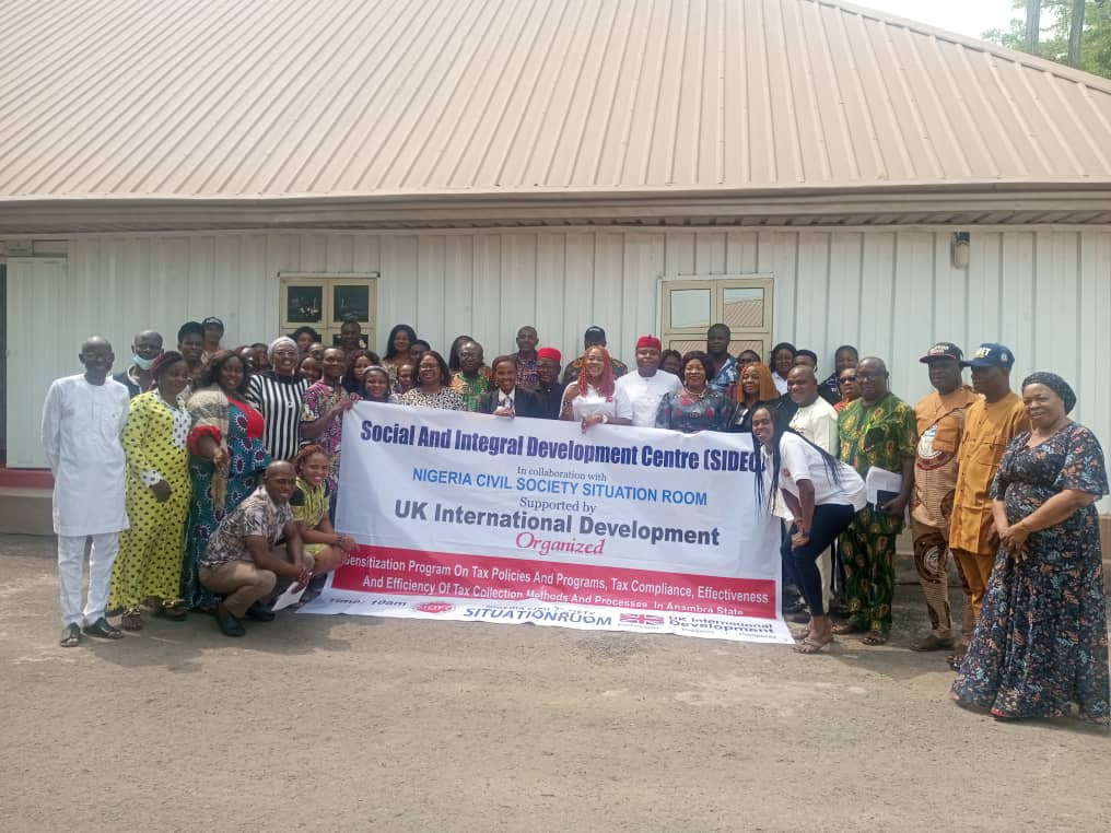 The Social and Integral Development Centre, SIDEC, in conjunction with the Nigeria Civil Society Situation Room with funding support of the Foreign and Commonwealth Development Office (FCDO), has held a one-day sensitization programme on tax policies and programmes, tax compliance, effectiveness and efficiency of tax collection methods and processes in Anambra State for stakeholders from Anambra South Senatorial District.