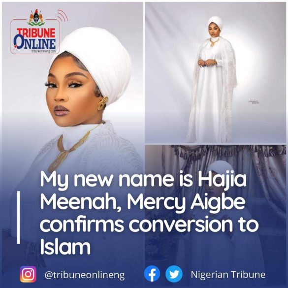 Nollywood Actress Mercy Aigbe has disclosed that she has converted to Islam while revealing her Islamic name at a Ramadan lecture/special prayers hosted by herself and her husband, Kazeem Adeoti, on Saturday